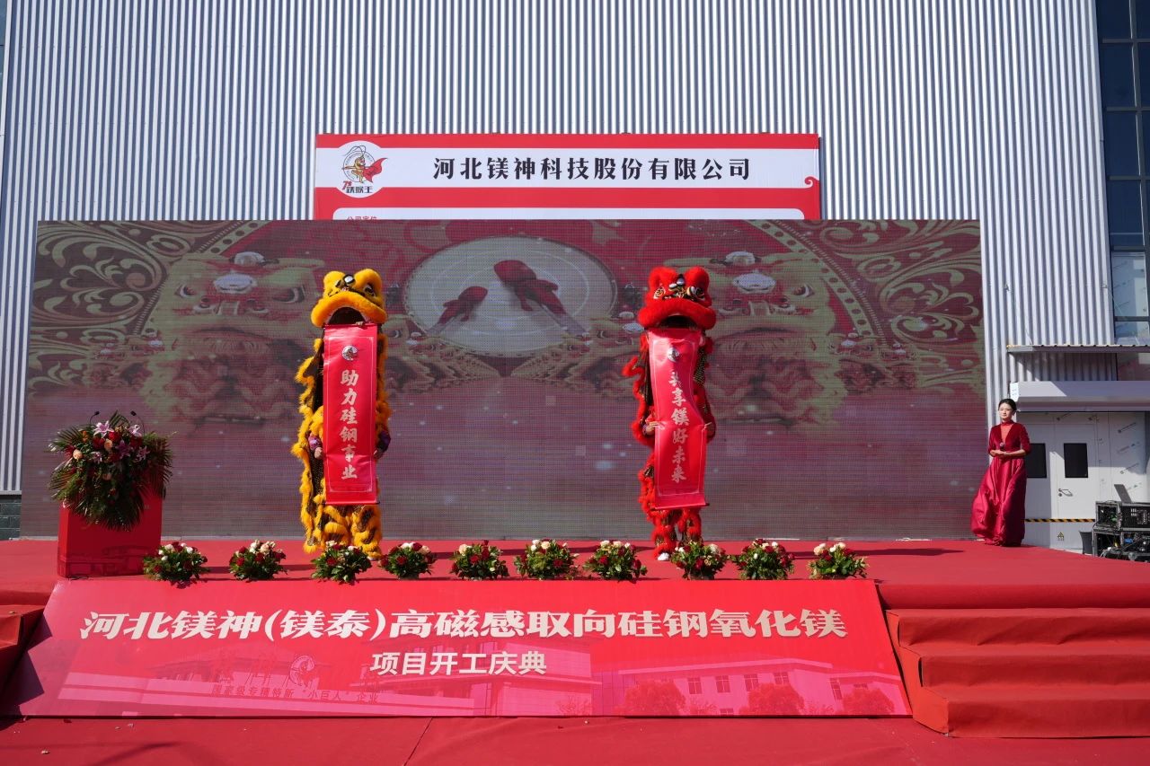 隨后,伴隨著鼓聲和音樂(lè),舞獅的跳躍騰挪、靈動(dòng)自如,為開工儀式增添了喜慶的氛圍,也表達(dá)了對(duì)公司項(xiàng)目順利推進(jìn)的美好祝愿。接著,鎂神科技董事長(zhǎng)孫文先生發(fā)表了熱情洋溢的致辭,正式開啟了高磁感取向硅鋼氧化鎂項(xiàng)目的輝煌篇章。