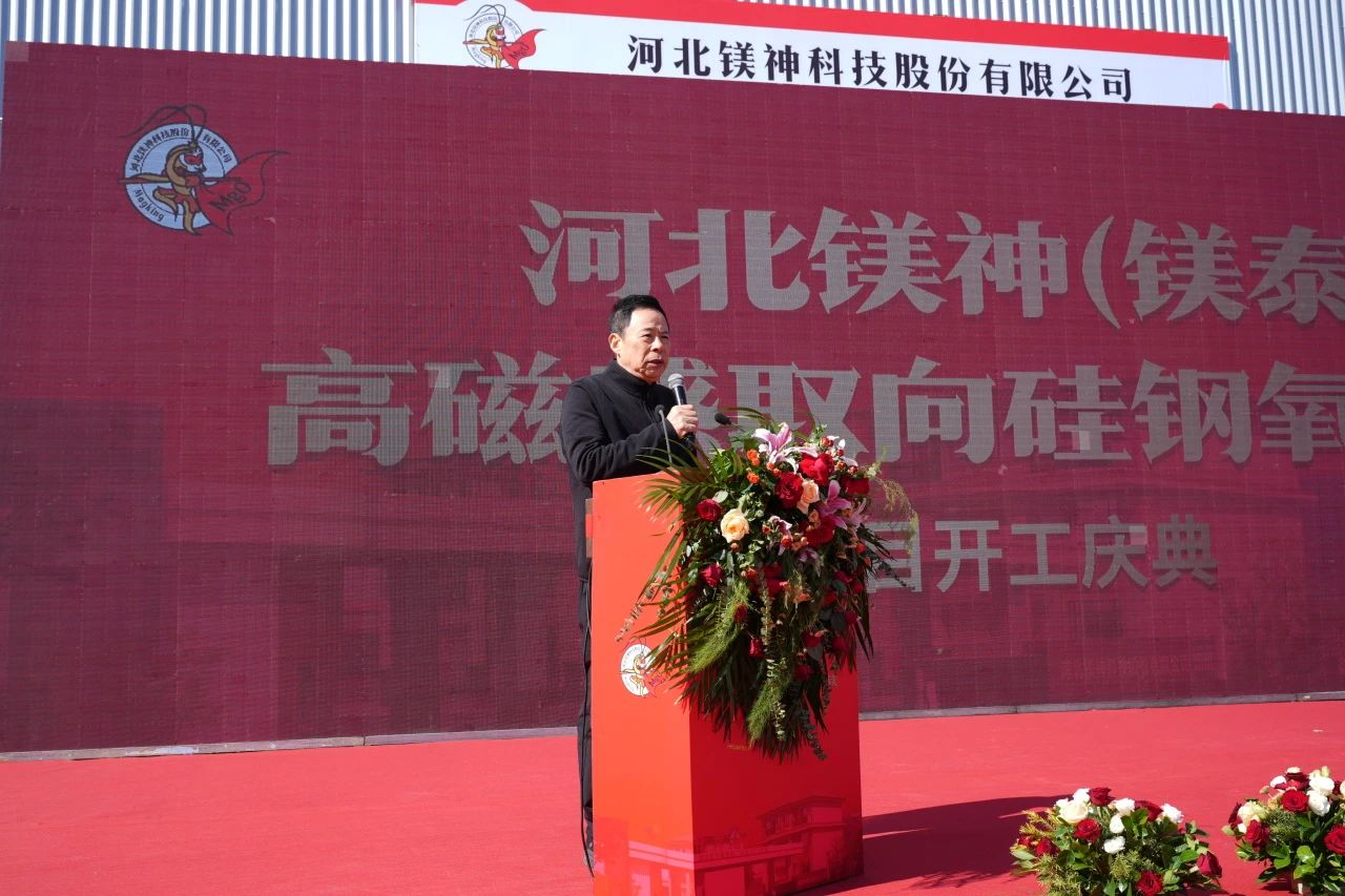 孫文董事長(zhǎng)首先對(duì)遠(yuǎn)道而來(lái)的各位領(lǐng)導(dǎo)、專家、合作伙伴和朋友們表示由衷的感謝。他提到,這一項(xiàng)目的順利啟動(dòng),離不開社會(huì)各界長(zhǎng)期以來(lái)對(duì)鎂神科技的支持與厚愛(ài)。在致辭中,他回顧了公司21年來(lái)通過(guò)專注于氧化鎂行業(yè)的深耕與應(yīng)用研發(fā),從傳統(tǒng)氧化鎂產(chǎn)品逐步向高端化、精細(xì)化轉(zhuǎn)型升級(jí)的發(fā)展歷程。并分享了自己站在中國(guó)鎂鹽行業(yè)的前沿對(duì)硅鋼氧化鎂的見(jiàn)解。最后,孫文董事長(zhǎng)再次對(duì)與會(huì)嘉賓的支持表示感謝!并堅(jiān)信在鎂神的戰(zhàn)友們共同努力下,未來(lái)10年一定能實(shí)現(xiàn)世界級(jí)鎂質(zhì)新材料定制專家,世界級(jí)應(yīng)用研發(fā)領(lǐng)跑者,全球鎂資源整合者,世界級(jí)隱形冠軍締造者的戰(zhàn)略目標(biāo)。為中國(guó)一帶一路添彩,為中國(guó)制造爭(zhēng)光,為民族復(fù)興增磚添瓦,為中國(guó)鎂行業(yè)發(fā)展貢獻(xiàn)我們的一份力量。
